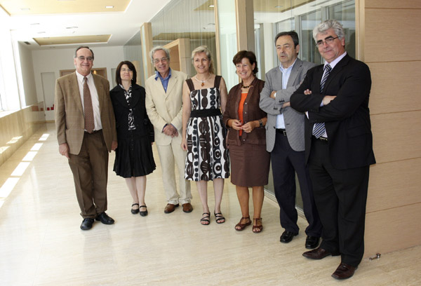 D’esquerra a dreta, el Dr. Josep Guitart (IEC/ICAC), codirector del projecte PAT; la Sra. Manuela Moya, tinent d’alcalde i regidora d’Urbanisme de Vila-seca, que va presidir l’acte; el Dr. Salvador Giner, president de l’IEC; la Dra. Marta Prevosti (ICAC), codirectora del projecte PAT; la Dra. Isabel Rodà, directora de l’ICAC; el Sr. Lluís Serra, conseller d’ACESA, i el Sr. Miquel Camacho, director de la Xarxa AP7-AP2 d’ACESA.