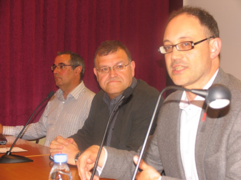 D’esquerra a dreta, conferenciants de la segona jornada: Jesús Carruesco (URV/ICAC), Marc Domingo (Princeton University) i Xavier Espluga (UB.)