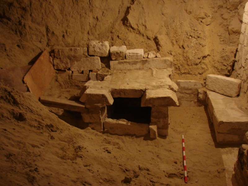 A la dreta, la sala d’Osiris, que ja s’havia excavat però durant aquesta campanya s’han acabat els treballs de consolidació.
