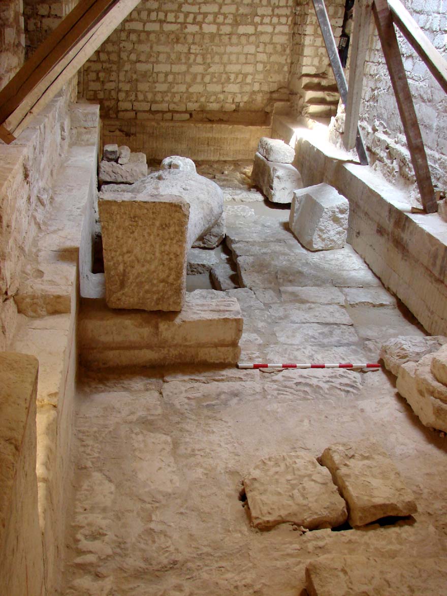 També s’ha iniciat l’excavació de l’espai principal de la fortalesa amb la delimitació d’un gran àmbit de funció incerta però que de moment presenta en superfície abundants fragments de decoració arquitectònica. “El més interessant és que alguns carreus són reaprofitats d’època faraònica, de l’època dels primers Ptomoleus”, afirma el Dr. Padró. “Això ens fa pensar —continua— que en època bizantina s’hauria anat a buscar pedra a l’Osireion per fer aquesta sala principal de la fortalesa.”