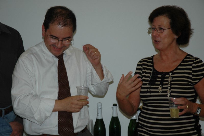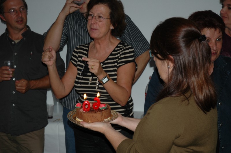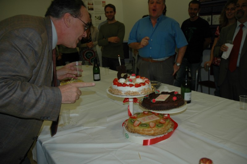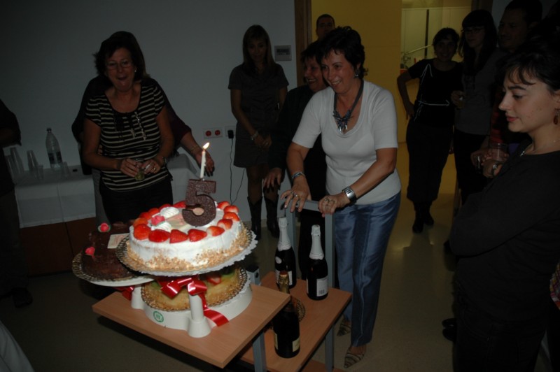Pastís commemoratiu del cinquè aniversari de l’ICAC. A la foto de la dreta, el primer director de l’Institut, Josep Guitart, bufa l’espelma. Al mig, celebració d’un altre aniversari de xifra rodona, els 60 anys de l’actual directora, Isabel Rodà.