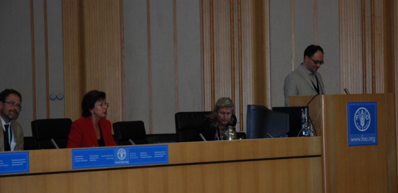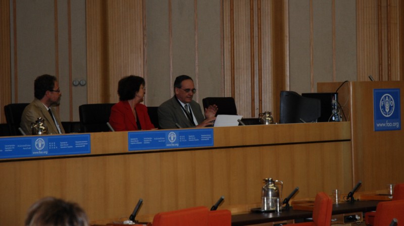 Josep Maria Palet (esquerra) i Josep Maria Macias en el decurs de les conferències que han fet al Palazzo della FAO a Roma.