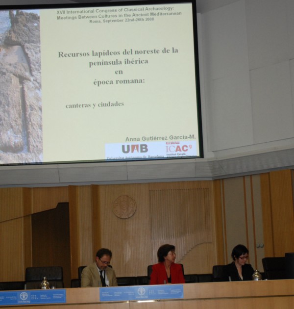 Prop d’una quinzena d’investigadors de l’Institut Català d’Arqueologia Clàssica han presentat, en la dissetena edició d’aquest congrés organitzat per l’Associació Internacional d’Arqueologia Clàssica (AIAC), els resultats d’alguns dels projectes que actualment es duen a terme des de l’ICAC. Ha estat avui, 25 de setembre, al Pallazzo della FAO de Roma, en el marc de la sessió titulada “Corrents culturals púnics, ibèrics i romans a Catalunya”. La sessió, protagonitzada totalment per arqueòlegs de l’ICAC, l’han presentat amb una conferència inaugural sota el mateix títol la directora de l’ICAC, la Dra. Isabel Rodà de Llanza, i del Sr. Pere Izquierdo, director del Museu d’Arqueologia de Catalunya.