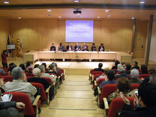 En l’acte hi van intervenir Antoni Gironès, arquitecte que ha confeccionat el projecte executiu de la inicitava, i Albert Sorolla, de l’empresa Naturalea, que ha estat l’encarregada d’elaborar el projecte de natura. La directora de l’ICAC, la Dra. Isabel Rodà, va parlar sobre la relació entre aquest projecte i un projecte més gran en el qual s’insereix, “La Via Augusta a Catalunya”.
