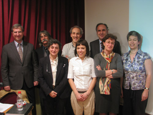 Imatge de la Dra. Silvia Alcaide (al centre) amb el tribunal, format per Margarita Orfila, Joaquín Ruiz de Arbulo, Josep M. Macias, Pascale Chevalier i Francesc Tuset, i els directors de tesi, Miquel Àngel Cau i Gisela Ripoll.
