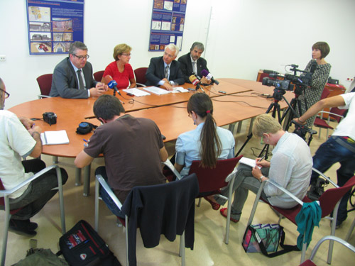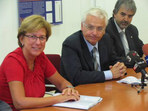 A la primera imatge, en roda de premsa a la sala de reunions de l’ICAC. D’esquerra a dreta, Jordi Agràs, director dels Serveis Territorials de Cultura a Tarragona; la Dra. Isabel Rodà, directora de l’ICAC; Ferran Mascarell, conseller de Cultura, i Joaquim Nin, delegat de la Generalitat a Tarragona.