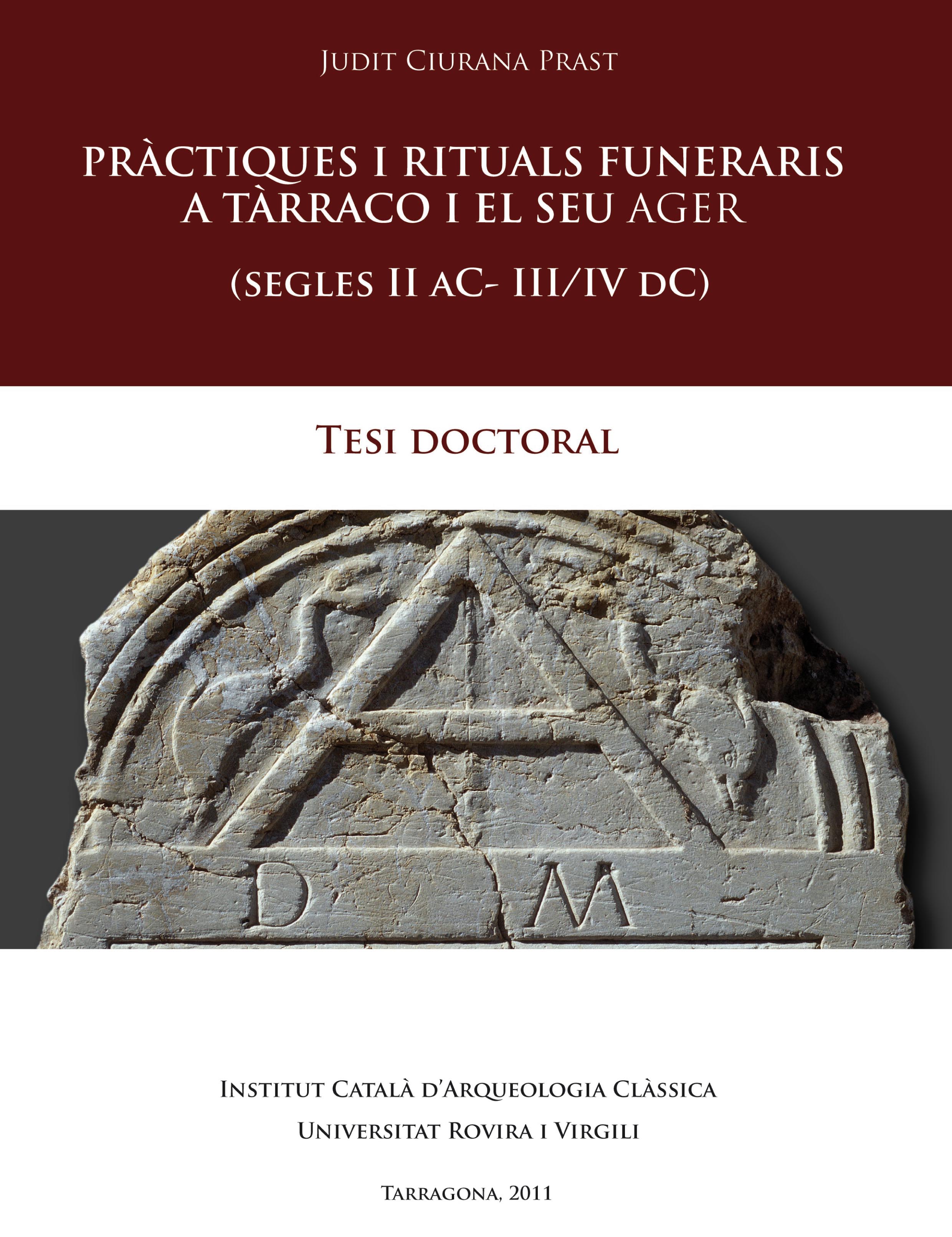 El principal objectiu de la tesi de Judit Ciurana és identificar, analitzar i interpretar els gestos rituals que se celebraren a les àrees funeràries de Tàrraco i el seu territori. S’ha elaborat un complet corpus que engloba sepulcres, textos epigràfics i elements escultòrics i arquitectònics i dades de tipus antropològic. El resultat ha estat la individualització d’un total de 741 sepulcres que s’insereixen en diverses àrees sepulcrals suburbanes i rurals. A part de l’anàlisi dels sepulcres amb tots els seus components (tipologia, aixovar i dipòsit funerari, restes humanes, elements de senyalització), també s’ha volgut ubicar les tombes en el paisatge funerari del qual formaven part.