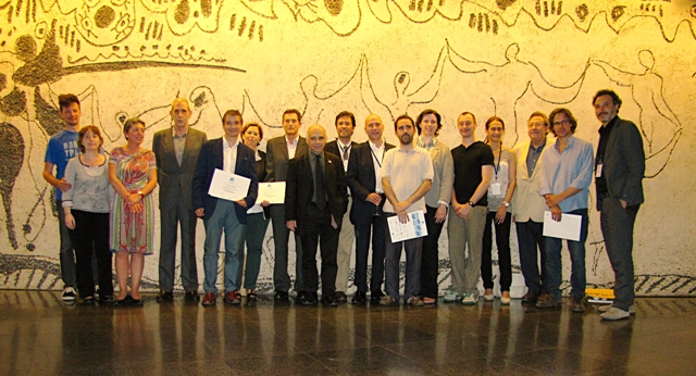 Acte del lliurement dels premis aquest 2013. Recull la distinció en nom del Parc Arqueològic de Guissona l’arquitecte Toni Gironès (segon per la dreta). Foto: AADIPA.