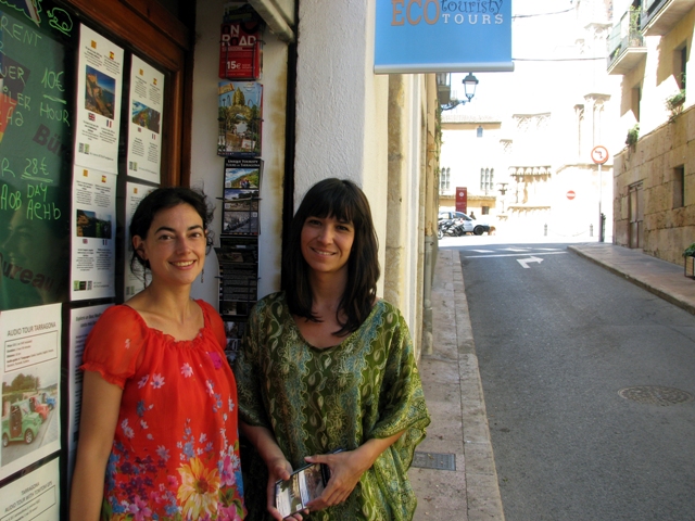 Itxaso Euba i M. Jesús Ortega a la seu d’Arrel, amb la Catedral de Tarragona al fons.