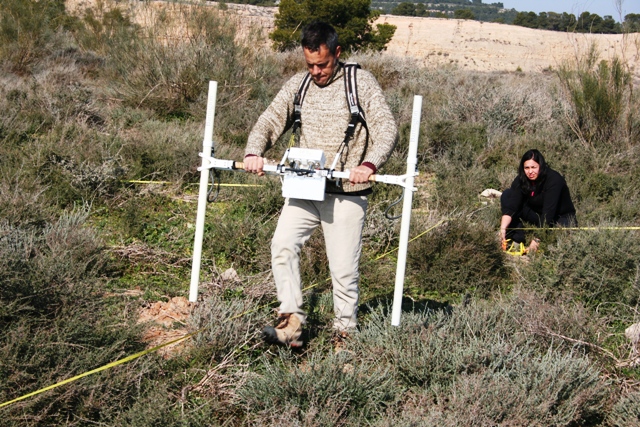 A la dreta, prospecció amb georadar al jaciment dels Castellassos (Tamarit de Llitera, La Llitera).
