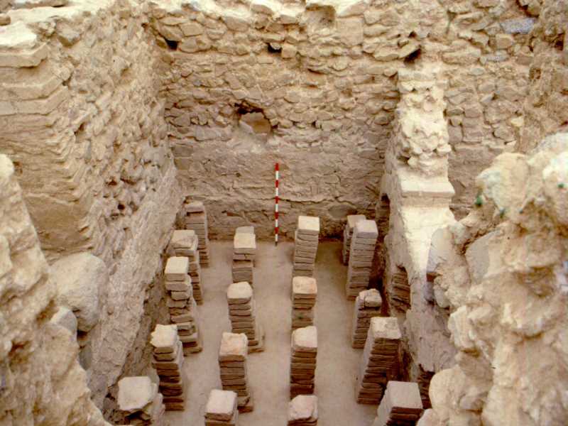 ¿Què va portar Marta Prevosti i Ramon Coll a voler aclarir la datació del pavelló octogonal? Pel tipus de planta (octogonal, en voga en el baix Imperi) i de tècnica constructiva (opus pseudospicatum) no els semblava propi d’època alt imperial, sinó que els semblava un pavelló de rebre d’època tardana.