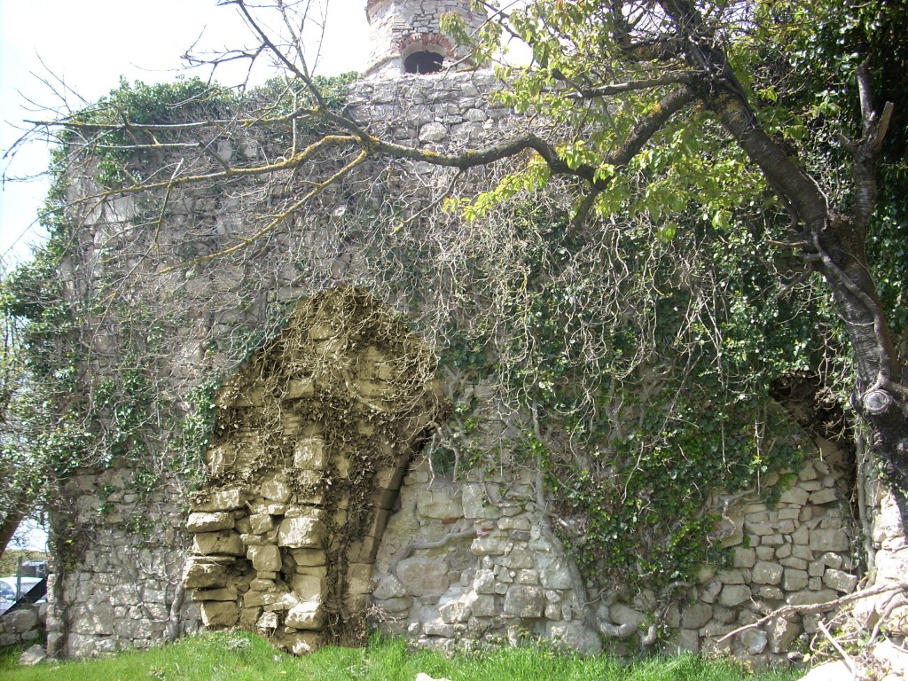 • L’arc de les cruixies de la nau de l’església, situat al mur oriental del temple modern. Presenta un arc apuntat fet de carreus ben escairats.