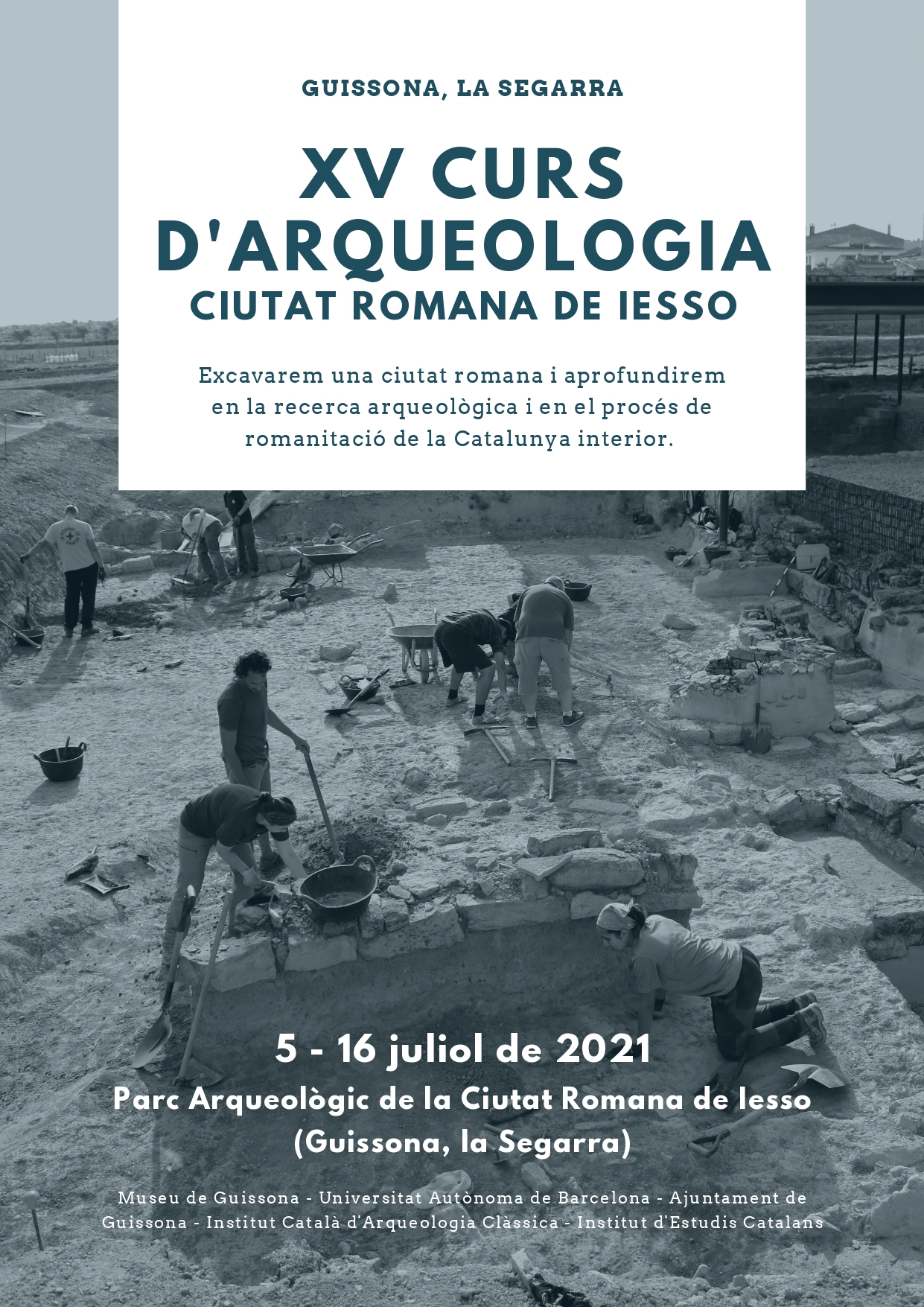 El 5 de juliol de 2021 s’iniciarà la XV edició del Curs d’arqueologia “Ciutat romana de Iesso“, al Parc Arqueològic de Guissona (La Segarra).