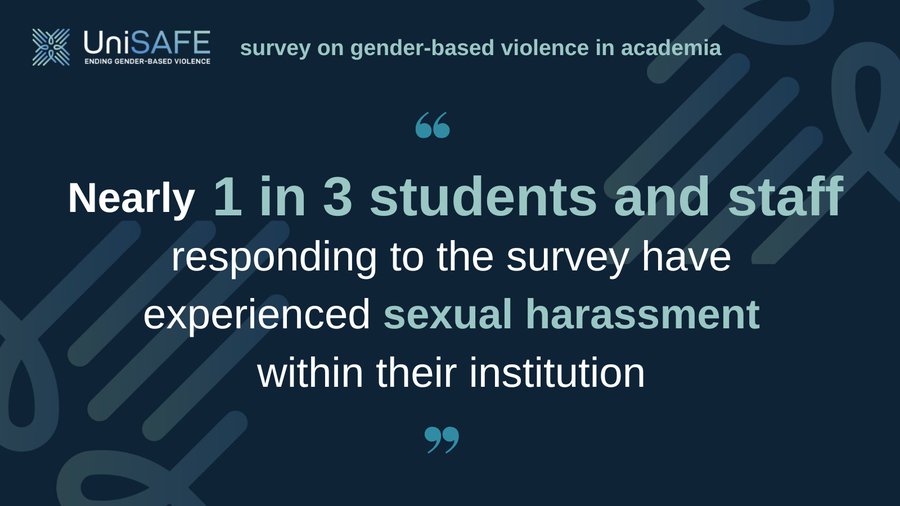 De gener a maig de 2022, personal i alumnat de 46 institucions científiques i universitats d’Europa van participar en l’enquesta UniSAFE que aborda les violències de gènere en el món acadèmic. És la major enquesta realitzada fins ara en l’Espai Europeu de Recerca, amb més de 42.000 respostes.