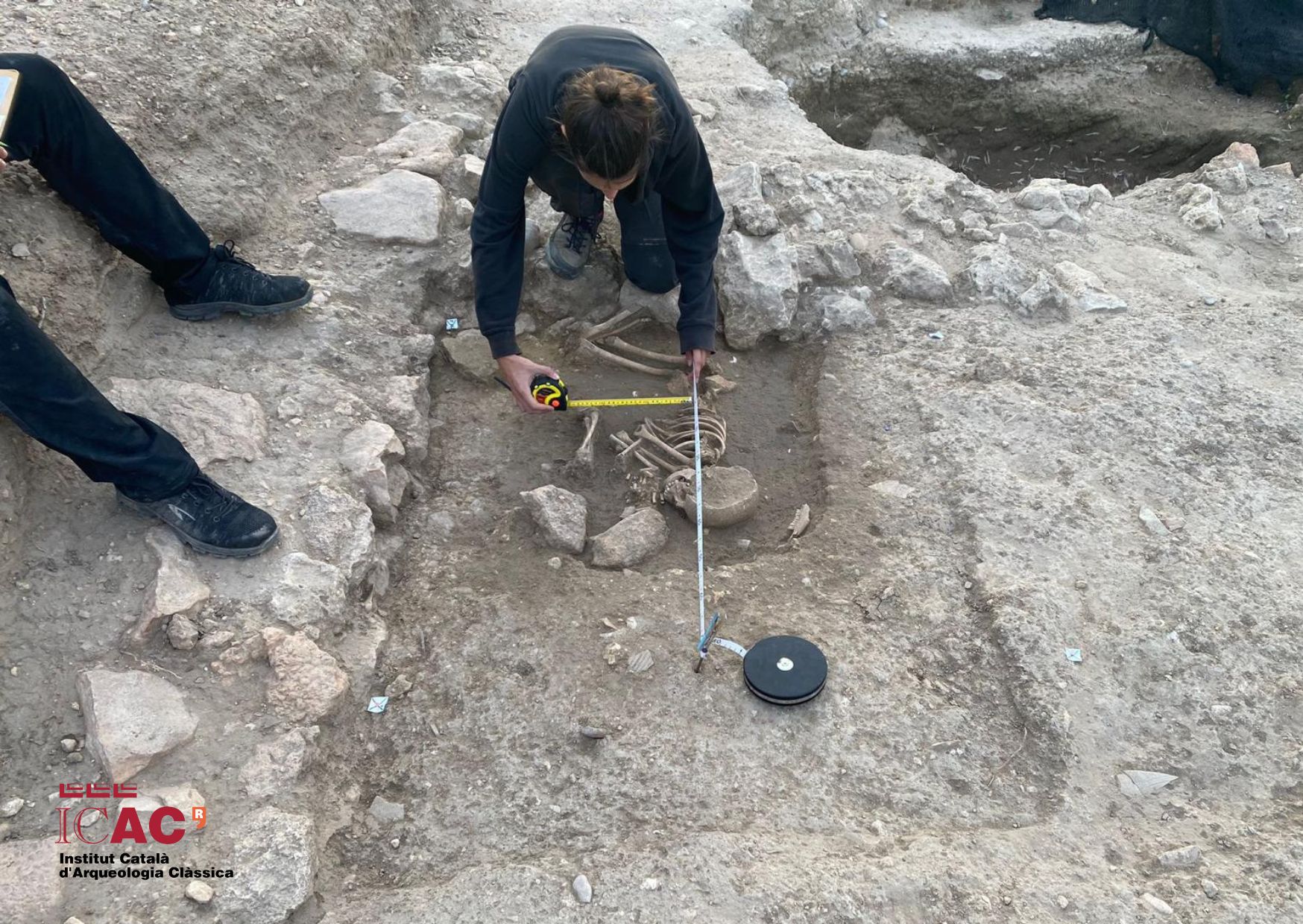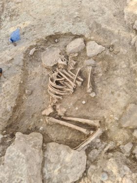 També, per comprovar si era un esquelet aïllat o si n’hi havia d’altres al voltant, els arqueòlegs han excavat una zona més àmplia i han localitzat materials de la segona meitat del segle VI dC que fan pensar que l’infant va morir cap a l’any 600 dC, per causes que per ara ens són desconegudes.