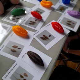 La part final va cridar especialment l’atenció per la presència d’unes reproduccions en 3D a gran escala (i en colors llampants!) de llavors antigues documentades en jaciments prehistòrics de la Mediterrània. La canalla havia de col·locar cada cereal damunt la seva targeta idenficativa. I no era tan fàcil com semblava!