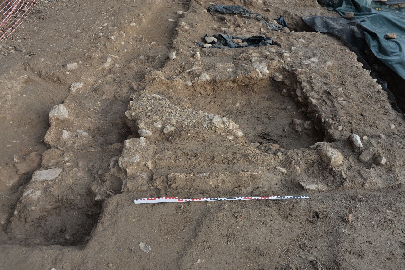 Al límit S-O de la zona intervinguda s’ha identificat un espai quadrangular amb part del seu paviment, que podria respondre a una funcionalitat productiva, atès que tot just al seu costat hi ha un petit dipòsit que fou parcialment excavat l’estiu del 2022. En un dels murs que el tanca s’hi han detectat dues petites canalitzacions de servei, potser per acumular residus sòlids per permetre una neteja més ràpida.