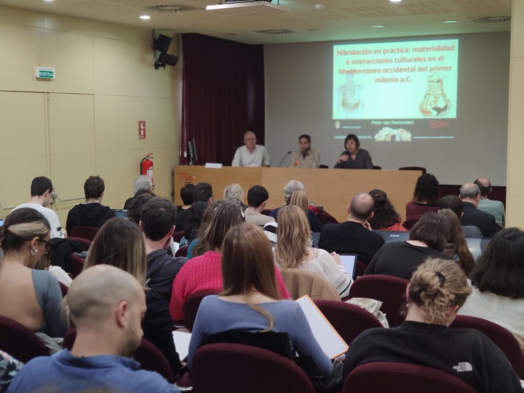 La sessió magistral va seguir un plantejament molt reflexiu al voltant de qüestions com el significat social dels objectes materials, la validesa de les evidències o la importància de tenir en compte la perspectiva local en els fenòmens d’imposició o intercanvi cultural. El professor Van Dommelen va ser molt dinàmic i proper, donant peu a les persones de la sala a debatre les seves idees i fer preguntes sobre possibles implicacions i casos d’estudi concrets.