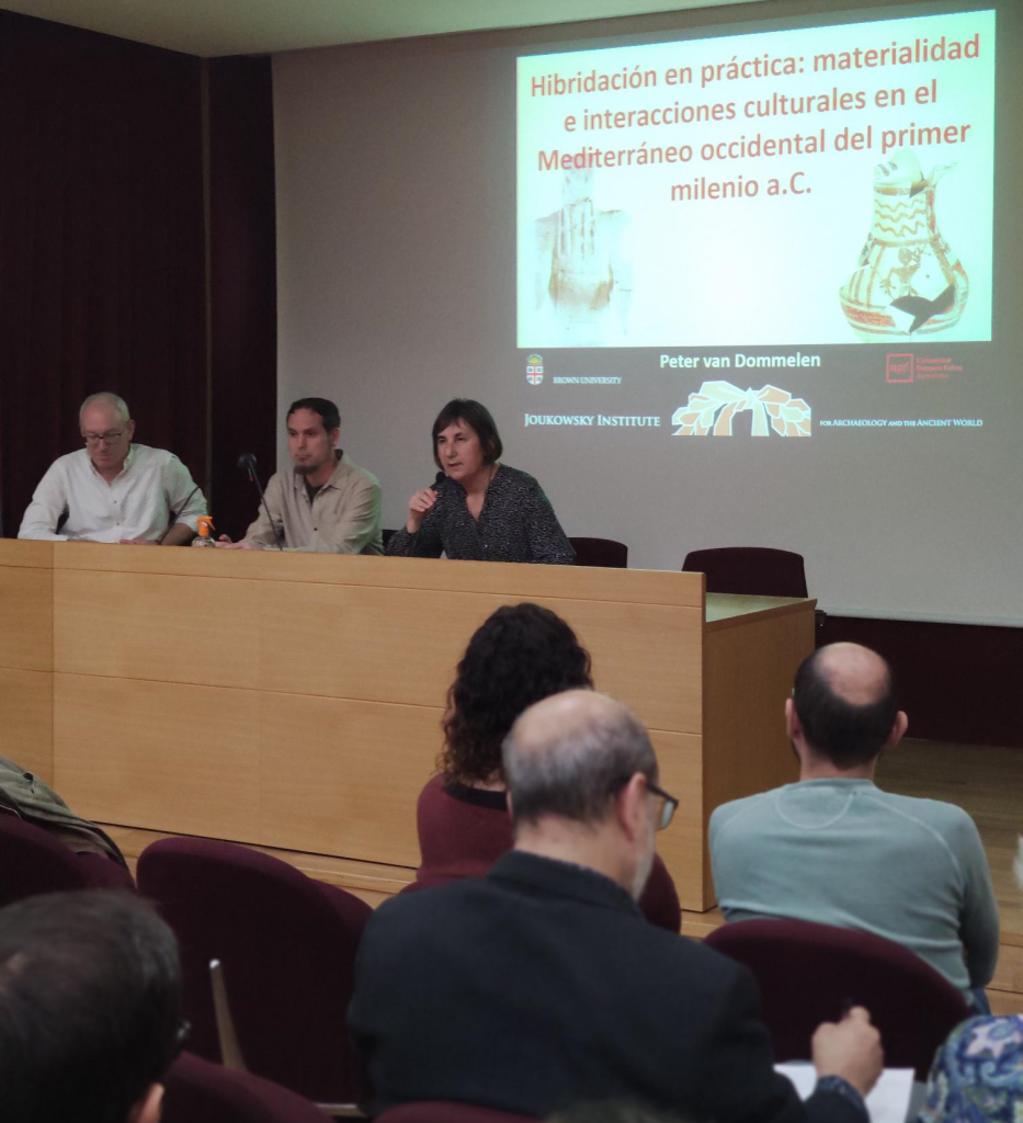 Joukowsky Family Professor of Archaeology i Professor of Anthropology a la Brown University (EUA), actualment és professor visitant a la Universitat Pompeu Fabra. Maria Carme Belarte (ICREA-ICAC-IEC, grup de recerca MIRMED) i Samuel Sardà (URV, grup de recerca GRESEPIA) no han desaprofitat l’ocasió de convidar Van Dommelen a Tarragona i poder conèixer de primera mà les últimes novetats de la seva recerca. Amb gran expectació, la Sala d’actes de l’ICAC va completar el seu aforament, amb prop de noranta persones, entre estudiants, investigadors/es i persones interessades.