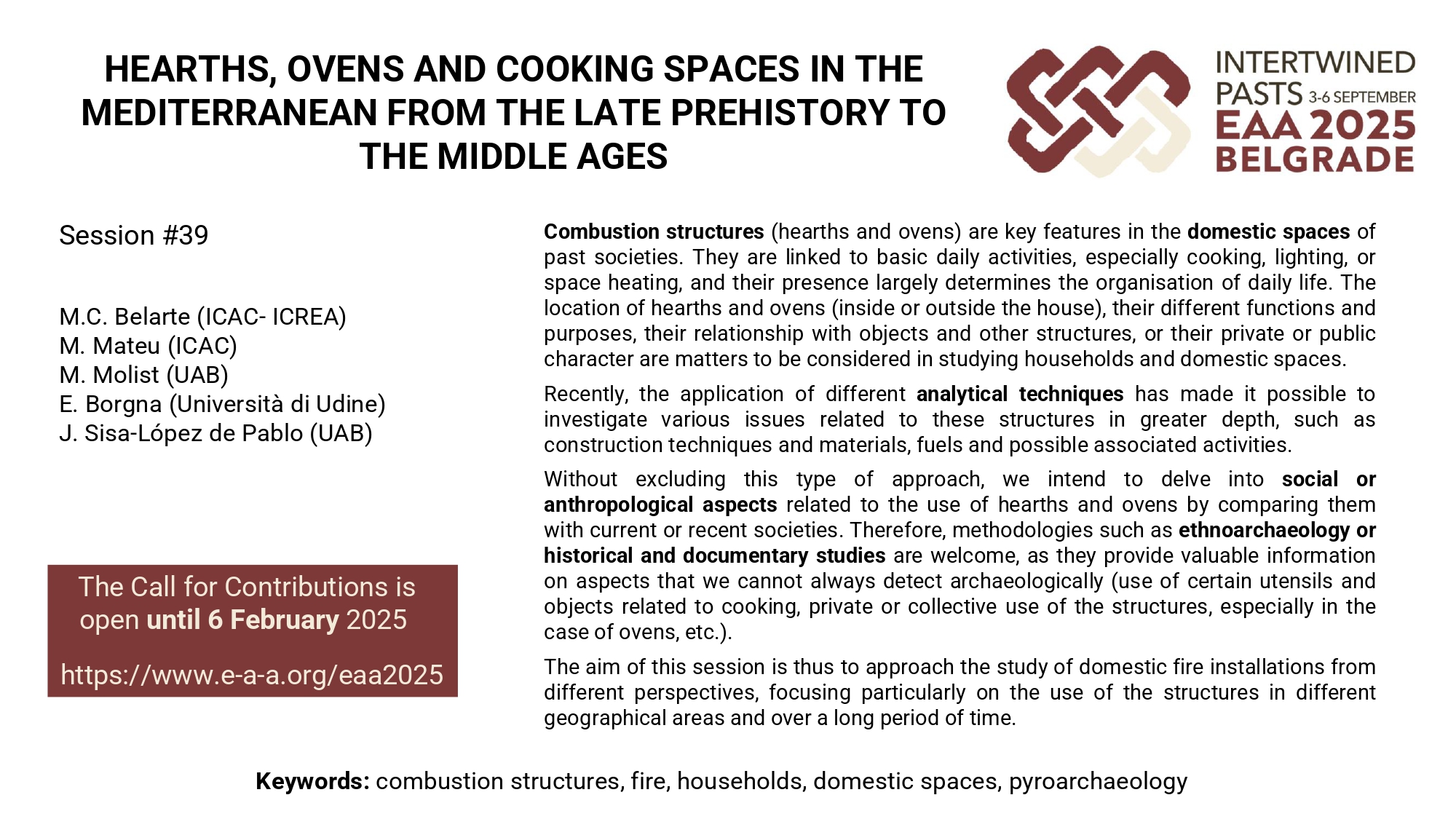 Session #39: Hearths, ovens and cooking spaces in the Mediterranean from the Late Prehistory to the Middle Ages poster
