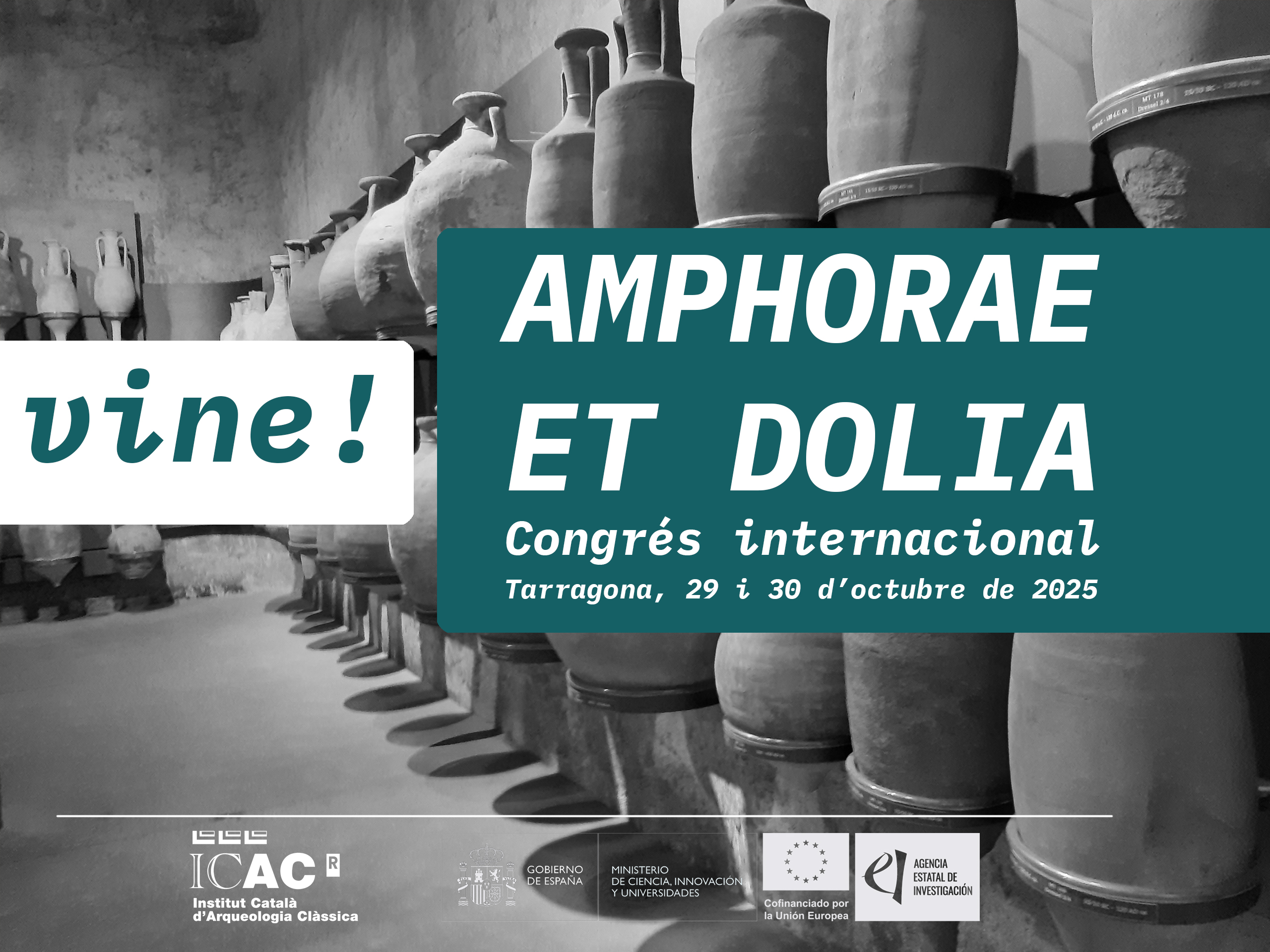 El congrés s’organitza en el marc del projecte Amphorae ex Hispania 3 (AExH3): the trade of Hispanic amphorae in the Roman era in the Mediterranean. Amphoric chrono-typology, and relationship between production and reception. (PID2022-138200NB-I00) finançat pel Ministerio de Ciencia, Innovación y Universidades i la Unió Europea.