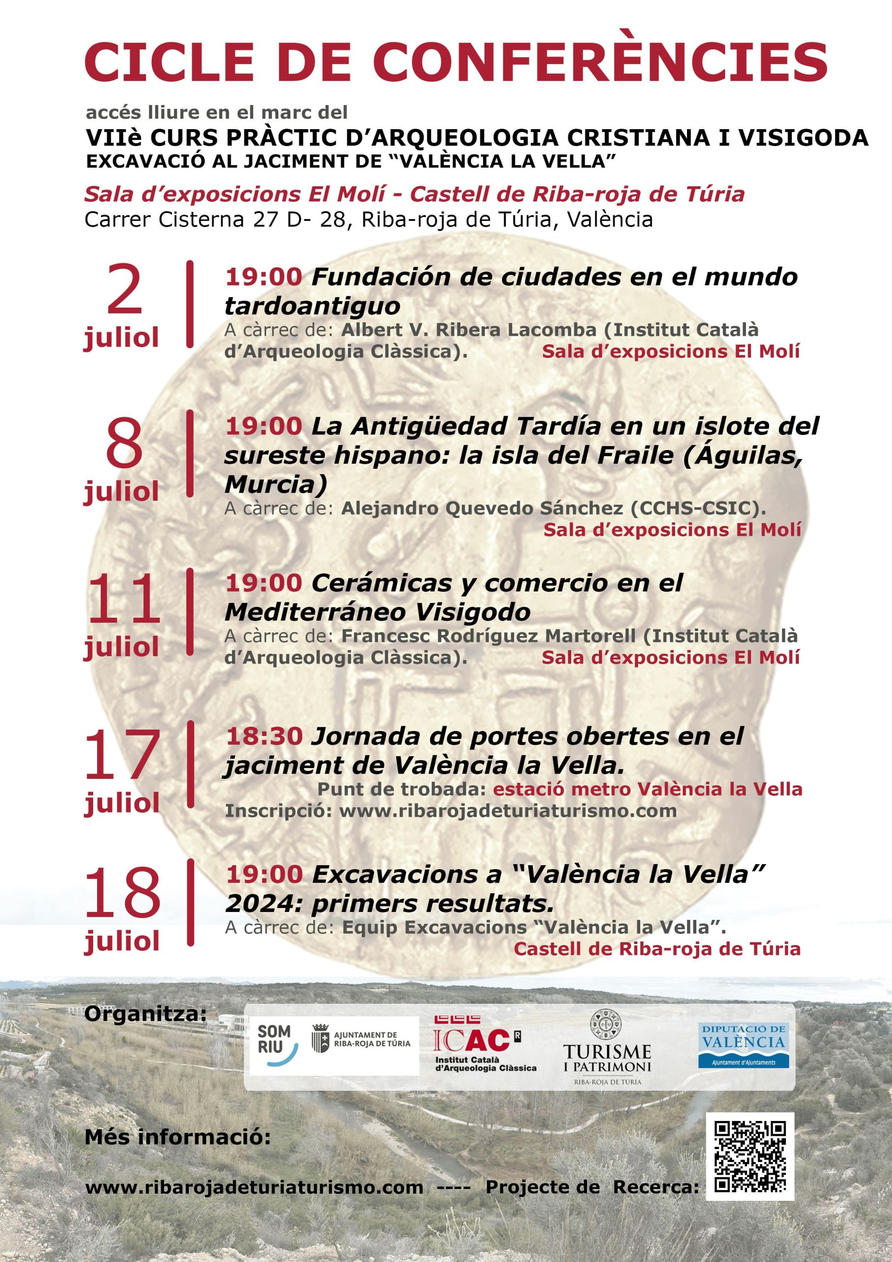 El mes de juliol celebrem una nova edició del cicle de conferències, en el marc del VII Curs d’Arqueologia Cristiana i Visigoda de València «la Vella», que enguany celebra la seva setena edició, de l’1 al 19 de juliol.