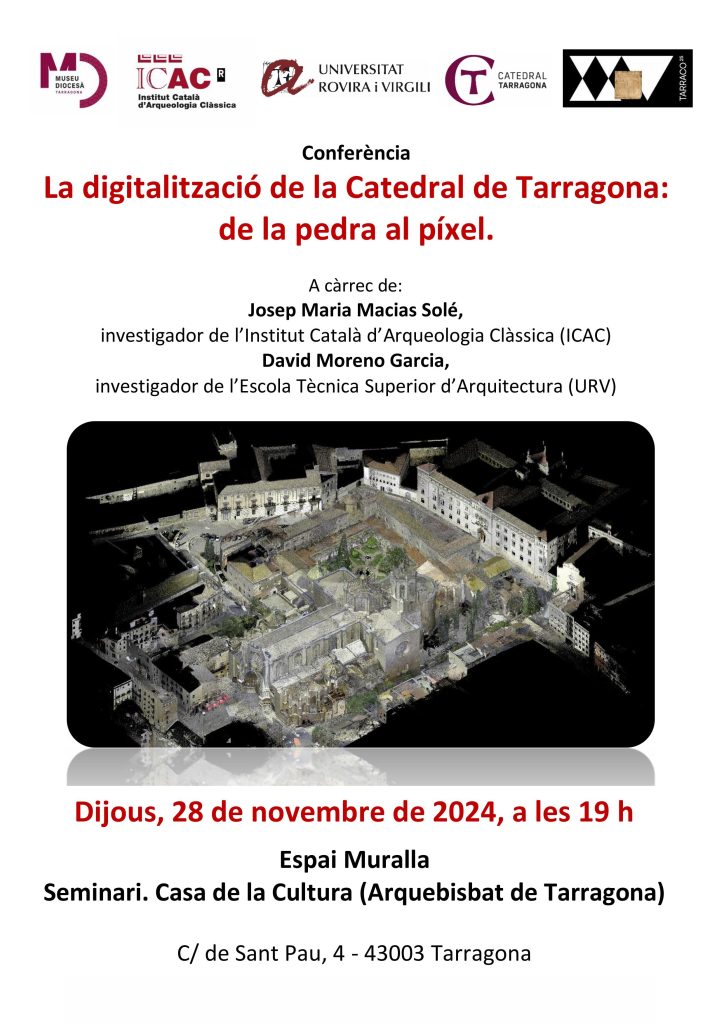 dijous 28 de novembre cloem la presentació de la digitalització del conjunt monumental de la Catedral de Tarragona amb una conferència divulgativa titulada «La digitalització de la Catedral de Tarragona: de la pedra al píxel», a càrrec de Josep M. Macias Solé (ICAC) i de David Moreno (ETSA-URV).