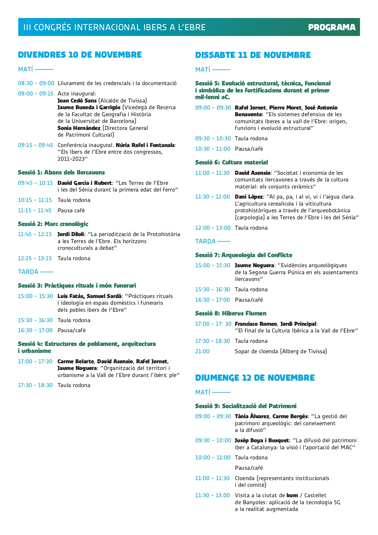 Els dies 10, 11 i 12 de novembre Tvissa acollirà el III Congrés Internacional Ibers a l’Ebre, organitzat pel Departament de Cultura de la Generalitat de Catalunya i la Universitat de Barcelona -a través del seu grup de recerca consolidat GRACPE (Grup de Recerca sobre l’Arqueologia de la Complexitat i els Processos d’Evolució Social), amb la col·laboració de l’ICAC.