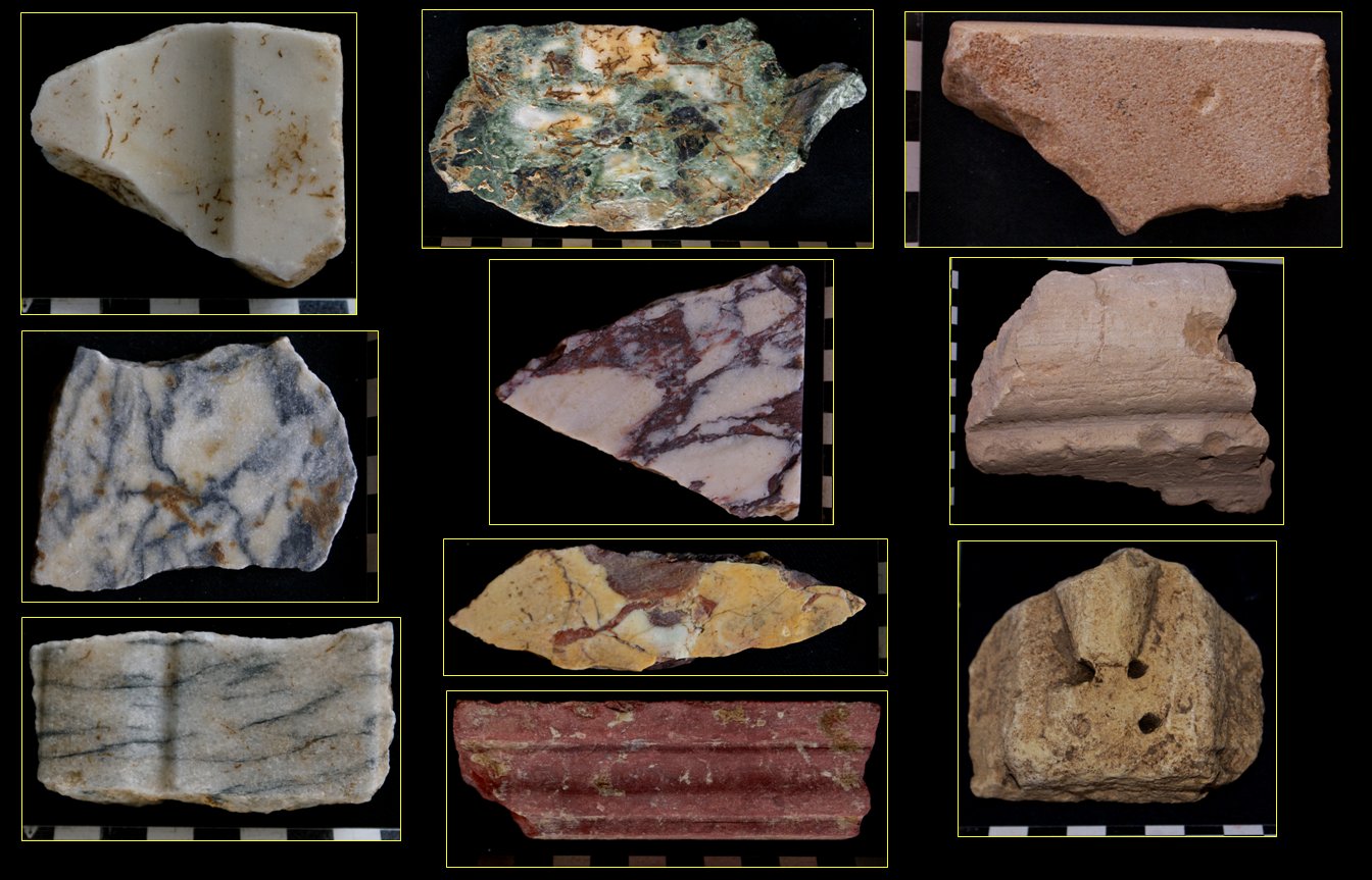 - Dimensión cualitativa: trata fundamentalmente de determinar la calidad y la procedencia de las distintas tipologías de los marmora utilizados en el complejo termal de Valeria.