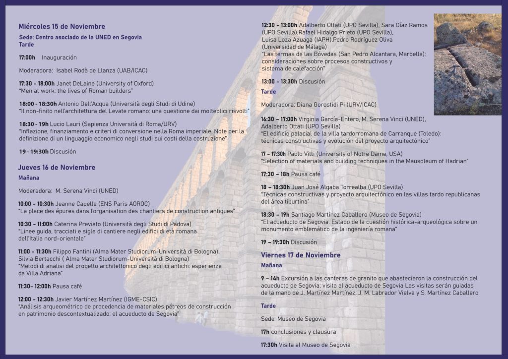Els dies 15, 16 i 17 de novembre, tindrà lloc la segona Reunión científica internacional. La cantera y el monumento (2). El proyecto arquitectónico y la organización de la obra en época antigua, organitzat per la UNED i el grup de recerca ArPA-LIRA en el marc del projecte de recerca SULMARE: Sulcato marmore ferro. Canteras, talleres, artesanos y comitentes de las producciones artísticas en piedra en la Hispania tarraconensis. (PID2019-106967GB-I00), que lideren les investigadores Diana Gorostidi (URV-ICAC) i Pilar Lapuente (UniZar-ICAC).