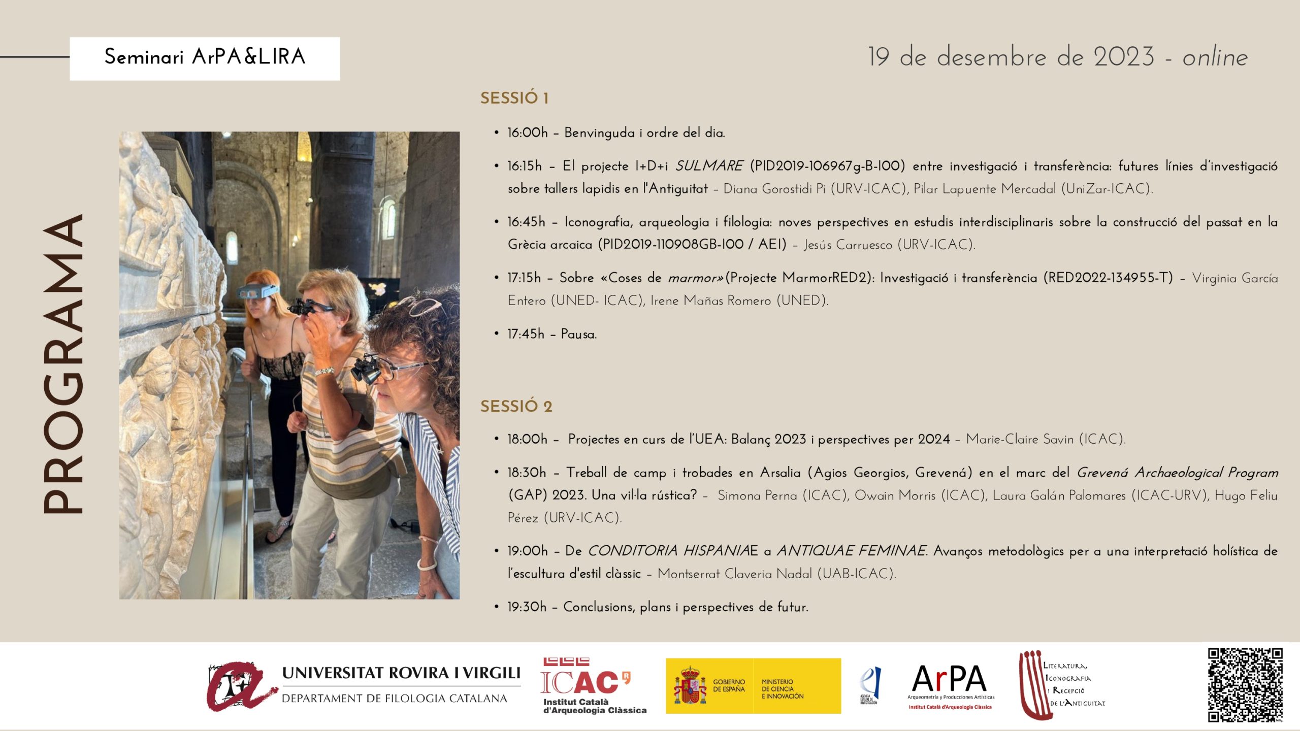 Organitza: ICAC, Grup de recerca ArPA-LIRA