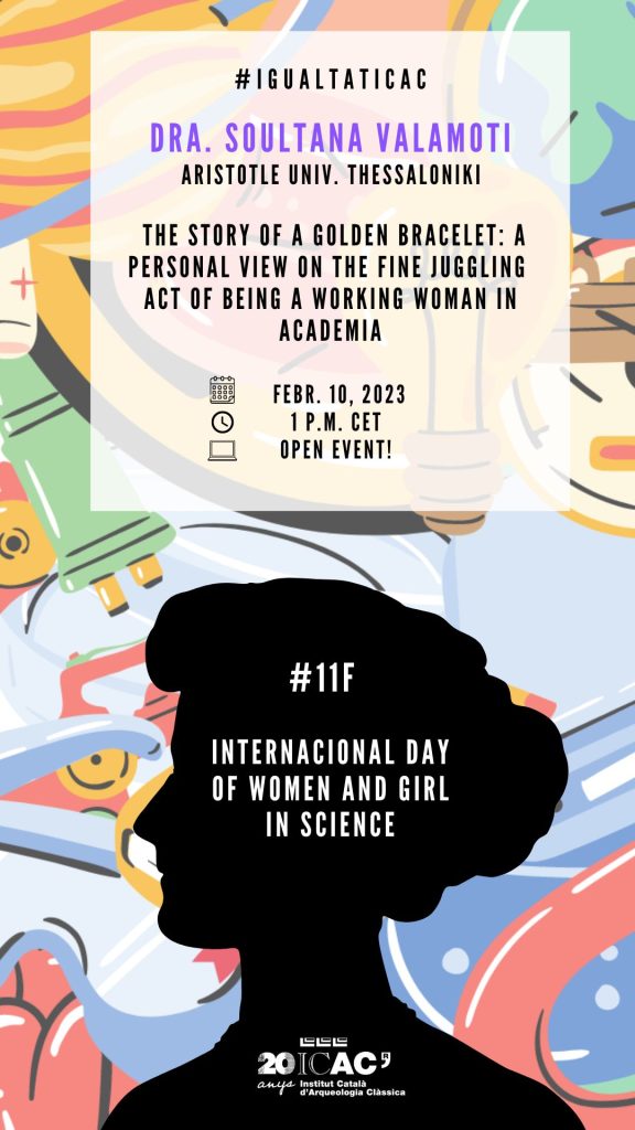 This dissemination talk, “The story of a golden bracelet: a personal view on the fine juggling act of being a working woman in academia”, by Prof. Soultana Valamoti will be held on Friday, February 10th, 2023, at 13 h (1 p.m. CET).