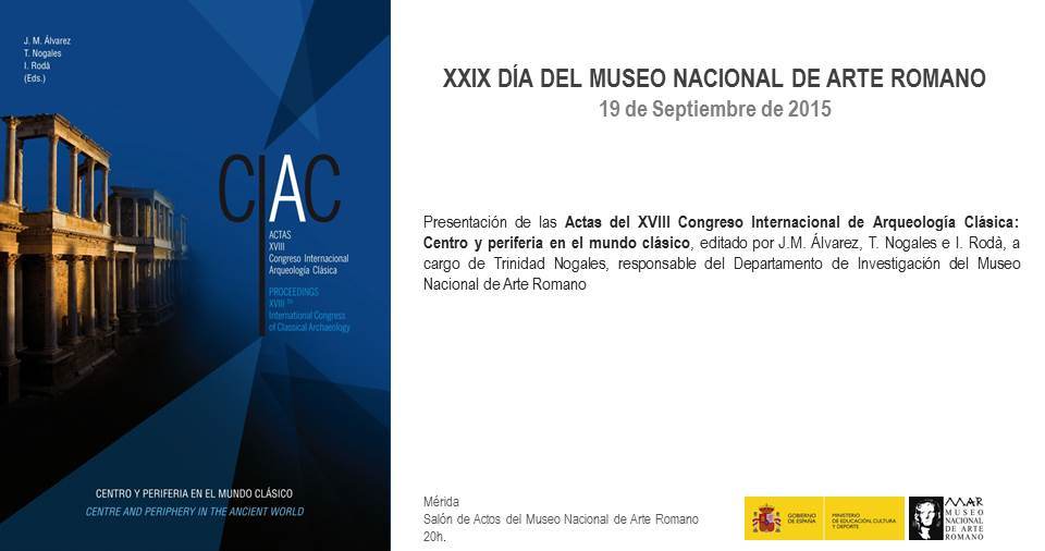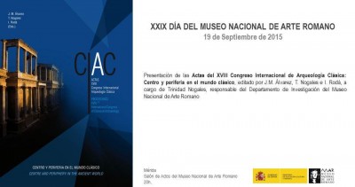 Dissabte 19 de setembre del 2015 té lloc a Mèrida la presentació de les Actas del XVIII Congreso Internacional de Arqueología Clásica: Centro y periferia en el mundo clásico. L’acte és a les 20 hores al Saló d’actes del Museo Nacional de Arte Romano (MNAR) de Mèrida.