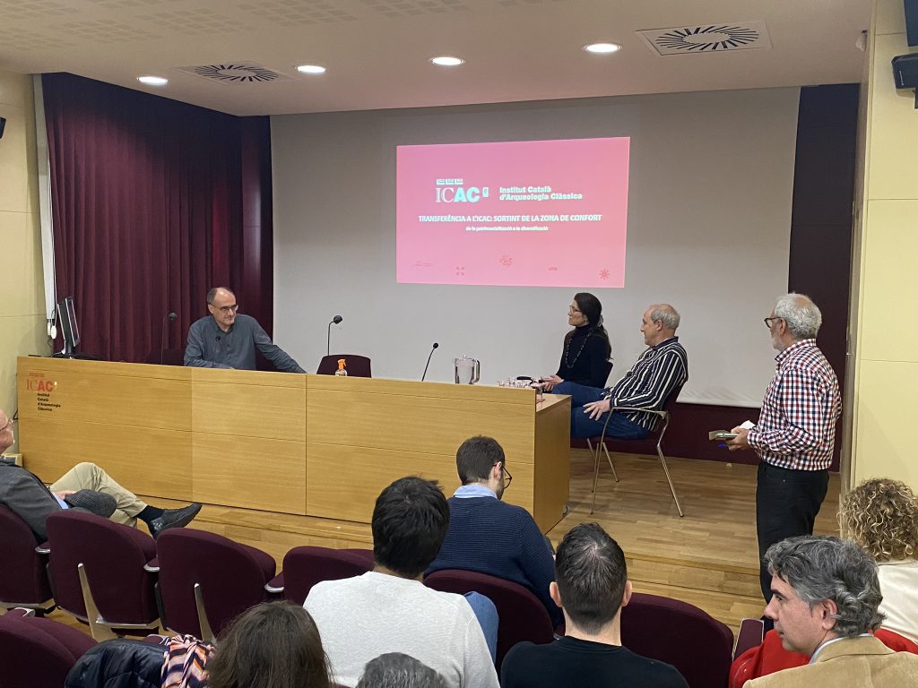 Així mateix, es van presentar dos casos d’èxit de la transferència que s’està duent a terme des de l’ICAC-CERCA: el projecte TarrACrO-Polis (FCT-18-13482) i el projecte Catedral de Tarragona (CLT009/22/00102), co-dirigits pel Dr. Josep Maria Macias. L’investigador va destacar el treball conjunt que s’està desenvolupant amb el Museu Bíblic Tarraconense en el disseny i implementació dels recursos museogràfics i divulgatius. En aquest sentit, Eudald Tomasa, director general del Grup Transversal Cultura i Comunicació, va destacar com la recerca arqueològica que s’està realitzant a la Catedral és un dels fonaments dels itineraris patrimonials i culturals que s’ofereixen al públic.