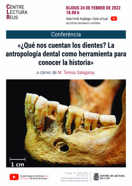 La investigadora adscrita a l’ICAC Mayte Salagaray impartirà al Centre de Lectura de Reus una conferència sobre l’aplicació de l’antropologia dental com a eina per a conèixer la història: «¿Qué nos cuentan los dientes? La antropología dental como herramienta para conocer la historia».