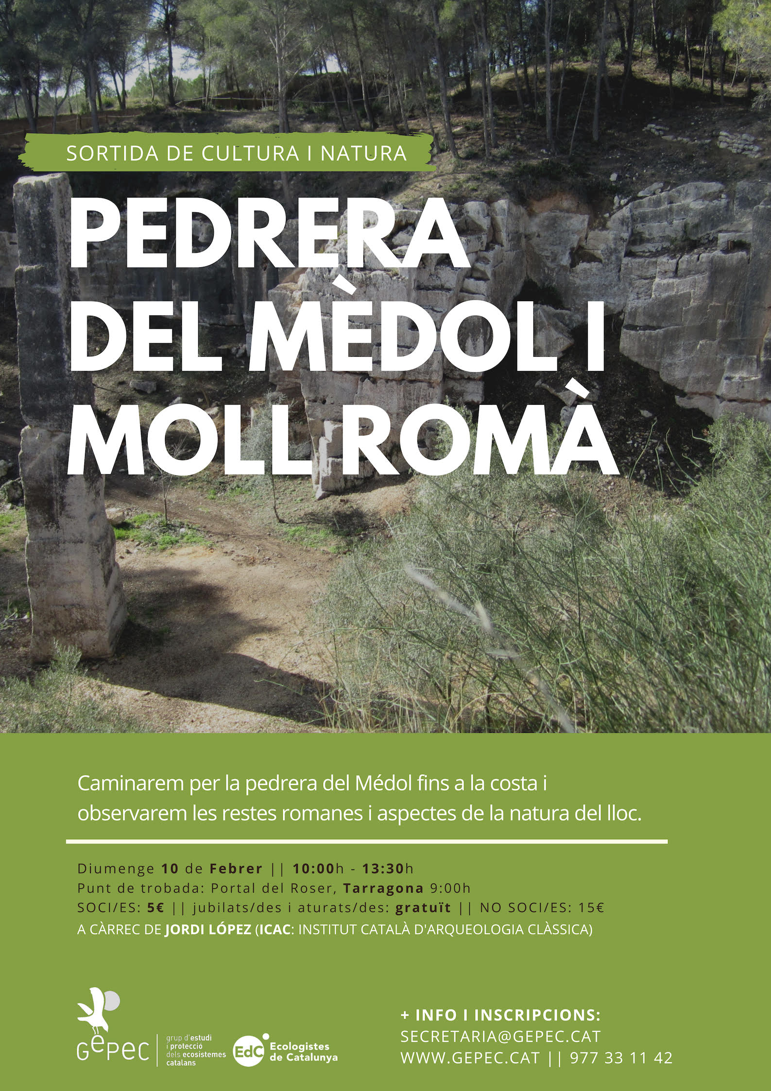 Sortida de cultura i natura. El Mèdol i el moll romà Author(s): López Vilar, J.Dates: 10/02/2019 - 10/02/2019Visita guiadaPedrera del Mèdol i Roca PlanaTarragona, 10 de febrerOrganised by: GEPEC PDF