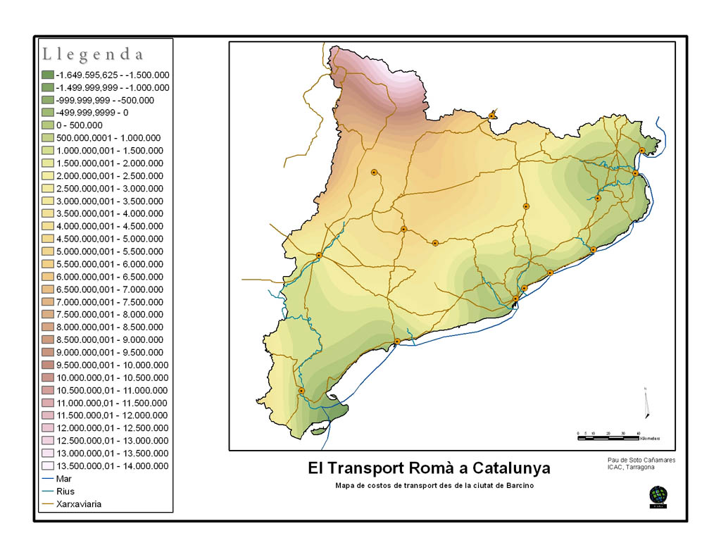 L’estudi s’ha dividit en dos grans blocs. Per una banda, l’acabament de la xarxa de comunicacions (terrestre, fluvial i marítima) del territori català, la base de la qual ja es va obtenir amb l’elaboració del treball de recerca presentat l’any 2006 i d’altra banda, l’estudi i anàlisi de la comunicació i el transport de mercaderies entre diversos punts de la geografia catalana. Els càlculs de costos, temps invertit, personal utilitzat o esforços es realitzen mitjançant programes SIG, juntament amb l’aplicació de factors compensatoris (mitjà de transport, desnivell, sistema de transport, utilitzant com a valors base els ja utilitzats en altres estudis (Carreras 1994, Lawton 2004; De Soto/Carreras 2009).