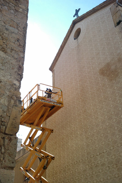 Per als treballs es va fer servir una grua de tisora de 18 metres.