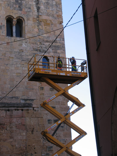 Per als treballs es va fer servir una grua de tisora de 18 metres.