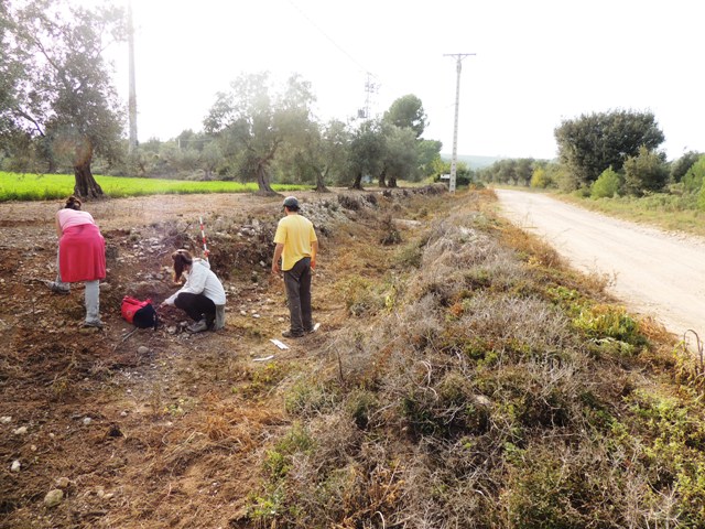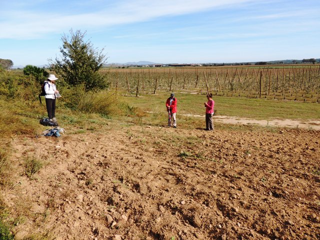 L’equip de prospecció en un olivet a Palau Borrell (Viladamat, Alt Empordà).
