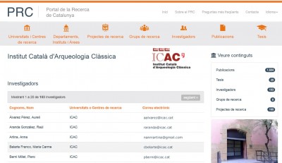 Os invitamos a visitar la nueva actualización del Portal de la Investigación PRC (Portal de la Recerca, en catalán), que tiene el objetivo de visualizar y difundir desde una única plataforma toda la investigación que se lleva a cabo en Cataluña y facilitar, así, el acceso abierto a la producción científica.