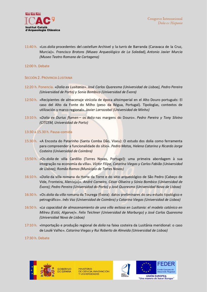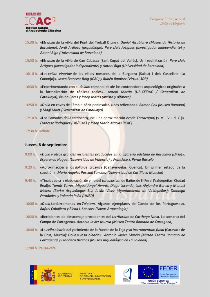El programa del Congreso Internacional Dolia ex Hispania. Los dolia en las provincias de Hispania en época romana contará con 40 comunicaciones y la participación de un centenar de investigadores e investigadoras de 43 universidades, centros de investigación y entidades de España, Francia, Portugal, Alemania, Italia, Rumanía y Marruecos.