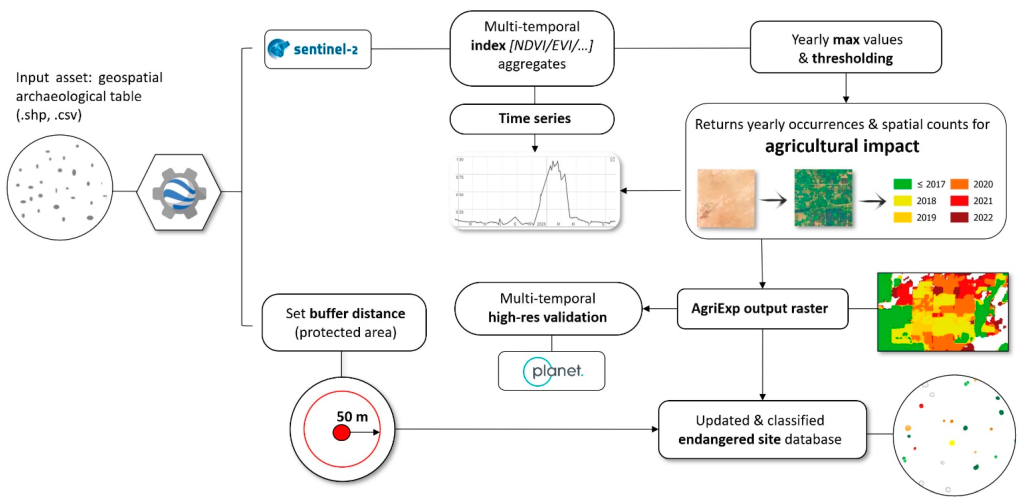 El algoritmo AgriExp, recientmente publicado en nuevo artículo científico publicado en la revista Remote Sensing representa un avance en la normalización de los resultados obtenidos por satélite para vigilar de forma sistemática y continua las amenazas y peligros a largo y corto plazo de las zonas patrimoniales.